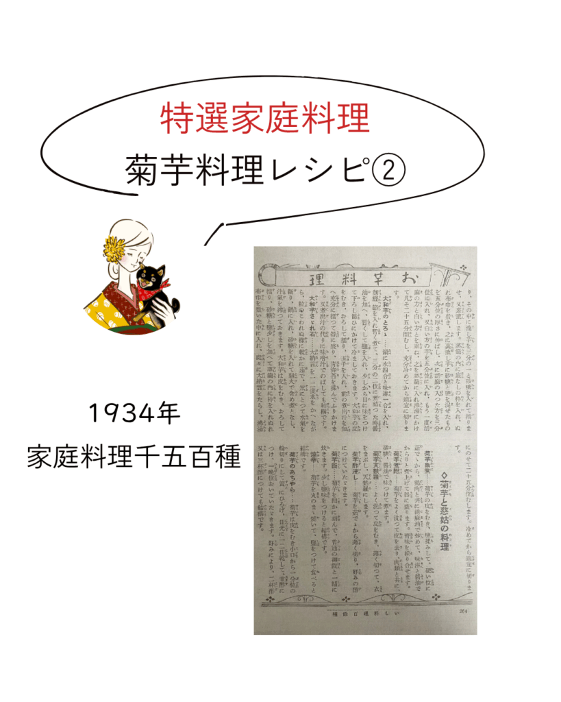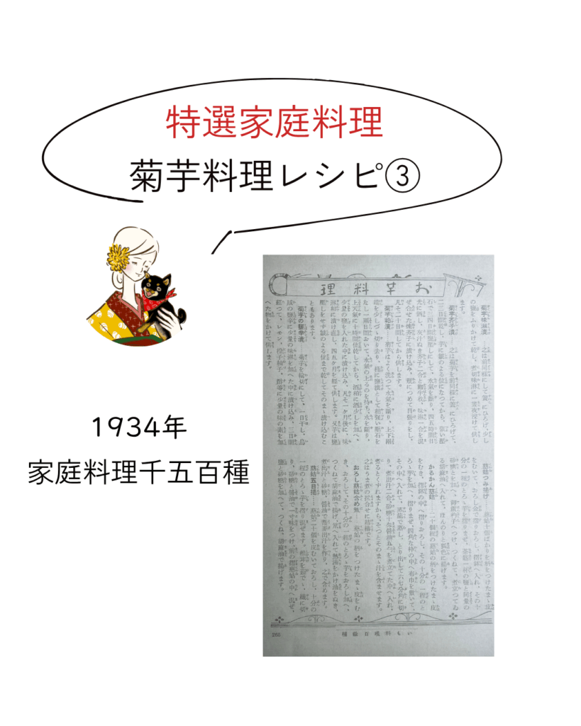 【家庭料理千五百種】料理の友社出版部發行編者:料理の友社編輯局發行者:倉林 恒助発行:昭和9年(1934年)4月20日 家庭料理に特化したレシピが満載!お芋料理コーナーのページには「菊芋と慈姑(くわい)の料理」の中に菊芋 […]