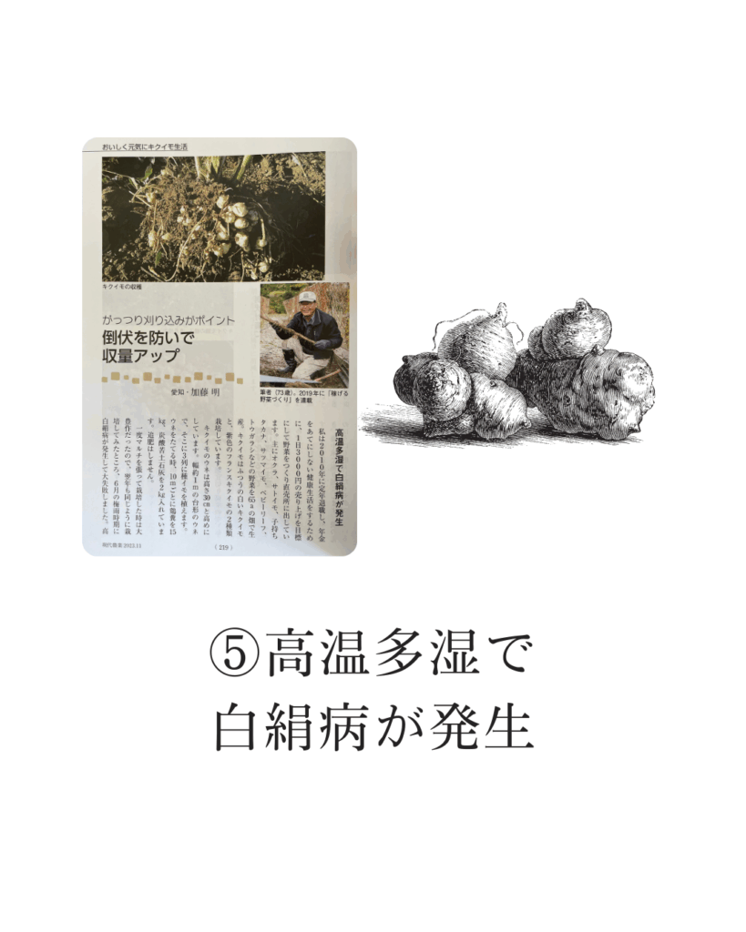 雑誌のご紹介【現代農業】2023年11月号 引用箇所(P219~P220)愛知県在住・加藤明様の記事📚 「高温多湿で白絹病が発生」 私は2010年に定年退職し、年金をあてにしない健康生活をするために、1日3000円の売り […]