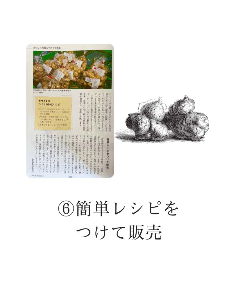 雑誌のご紹介【現代農業】2023年11月号 引用箇所(P221)愛知県在住・加藤明様の記事 「簡単レシピをつけて販売」 直売所では500g単位で180~200円で販売しています。初出荷は200円から始まり、他の人の出荷量 […]