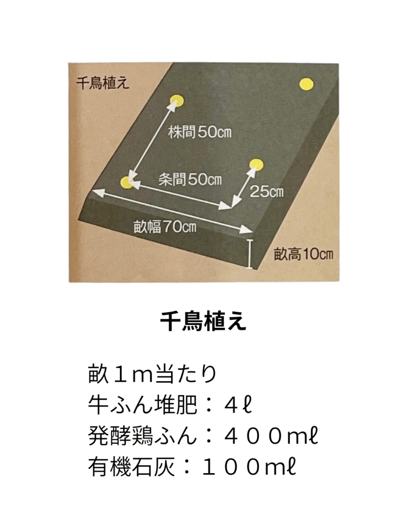 植えつけ1週間前までに、元肥と有機