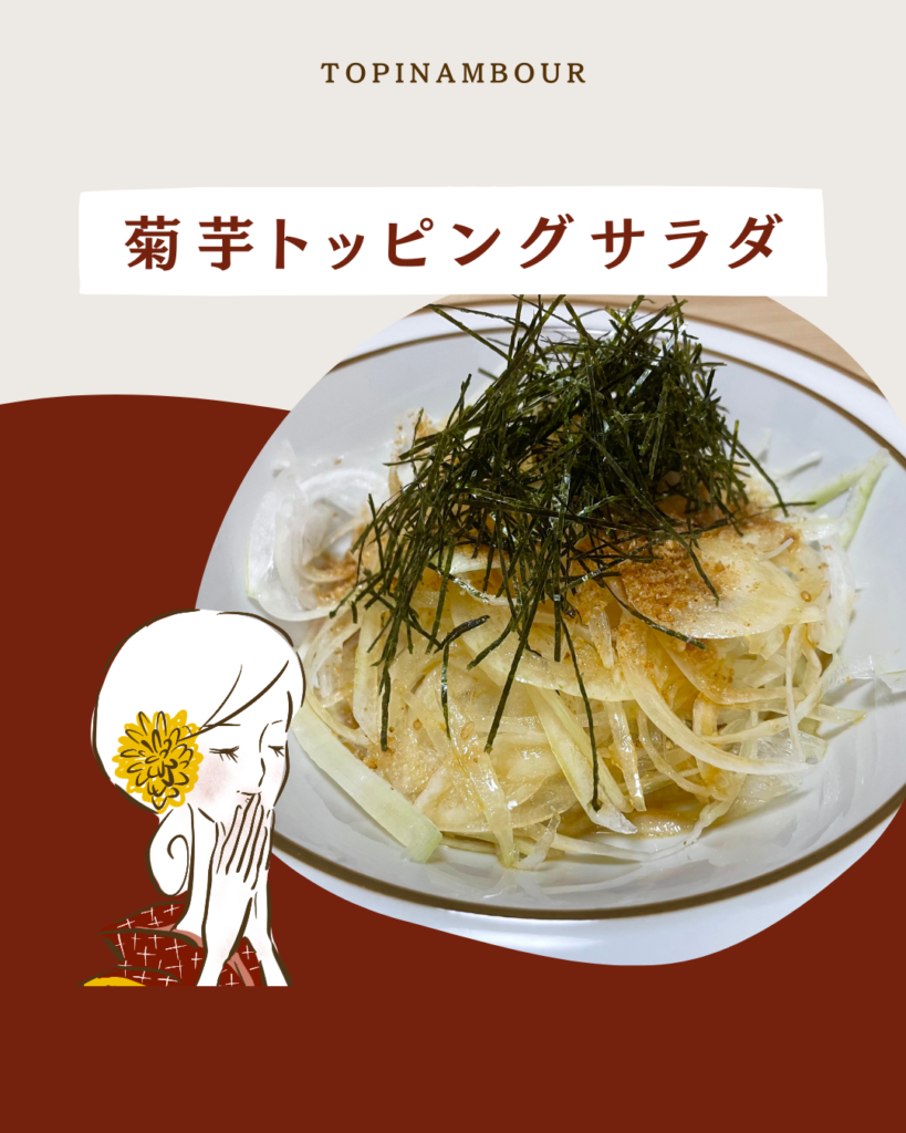【菊芋トッピングサラダ】 菊芋茶(焙煎菊芋)をミルサーで粉末にし、かつお粉と同量に混ぜ合わせたものをトッピング。ごま油風味、和風のドレッシングととても相性がいいです。 こちらは玉ねぎのスライスに市販の和風ドレッシングを軽 […]