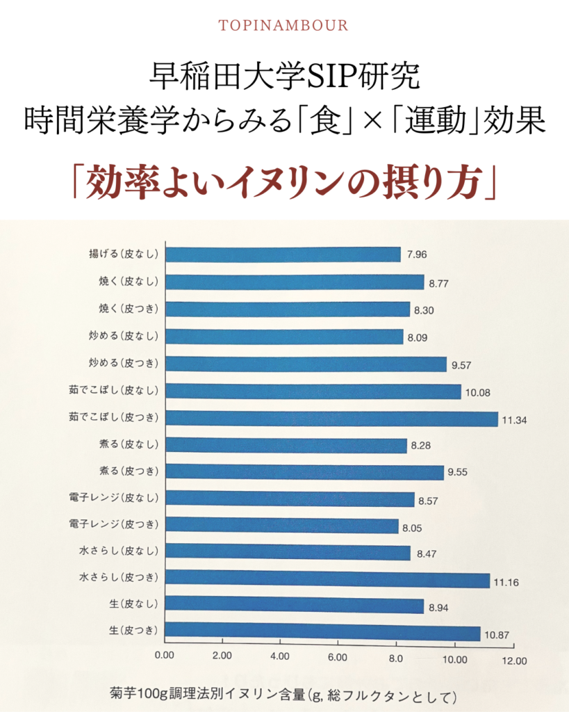 書籍📚早稲田大学SIP研究菊芋×運動レシピでイキイキ! 引用箇所(P33)【効率よいイヌリンの摂り方】 菊芋に含まれるイヌリンは水溶性のため、皮をむかずにさっと茹でこぼす、つまり「水にイヌリンを逃さない」調理法をすると、 […]