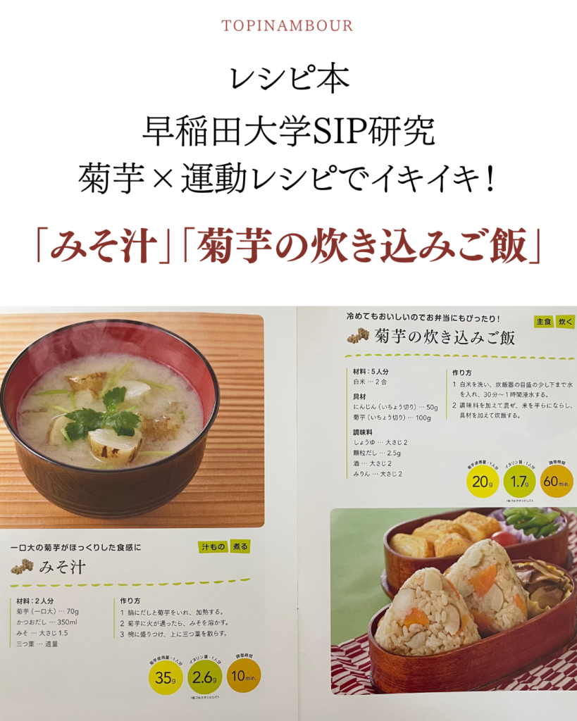 レシピ本📚早稲田大学SIP研究菊芋×運動レシピでイキイキ! 昨日に引き続き生菊芋のレシピをご紹介します。生菊芋のホクホク感でより美味しさ倍増ですね😋 レシピ②💫「みそ汁」材料2人分菊芋(一口大)…70gかつおだし…350 […]