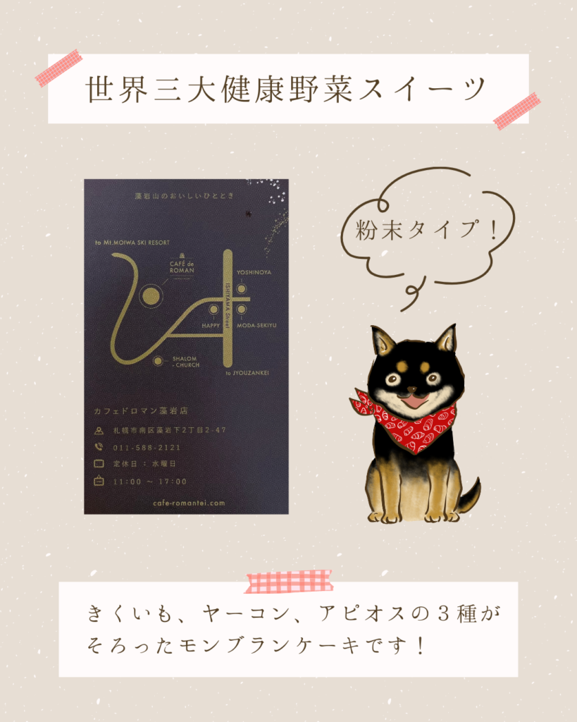 .以前ご紹介した北海道の「もいわチョコモンブラン」ケーキ🧁札幌市内にある老舗の洋菓子店「ろまん亭」の姉妹ブランド「Café de ROMAN」がヴィーガン対応のスイーツとして開発され、さらには世界三大健康野菜である菊芋、 […]