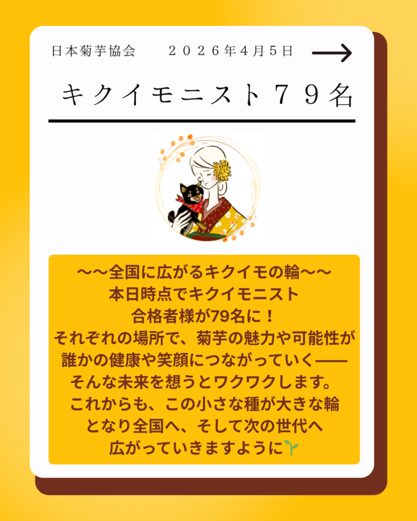~~全国に広がるキクイモの輪~~ 本日の時点でキクイモニスト合格者様が79名に🌼✨ それぞれの場所で、菊芋の魅力や可能性が誰かの健康や笑顔につながっていく——そんな未来を想うとワクワクします☺️ これからも、この小さな種 […]