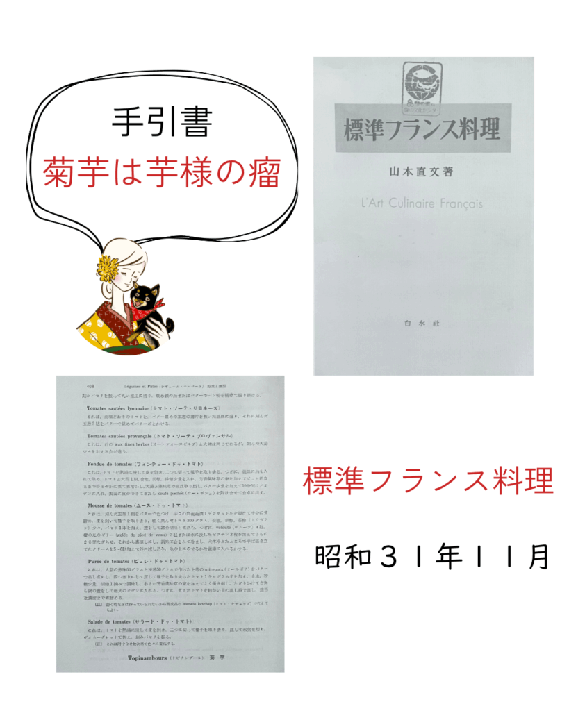 【標準フランス料理】著者:山本 直文発行:昭和31年(1956年)11月25日 著者略歴1890年生まれ、東大仏文科卒仏語・仏文学専攻前東京学芸大教授著書『標音仏和辞典』他 フランス料理の手引書🇫🇷基礎的な料理、一般家庭 […]