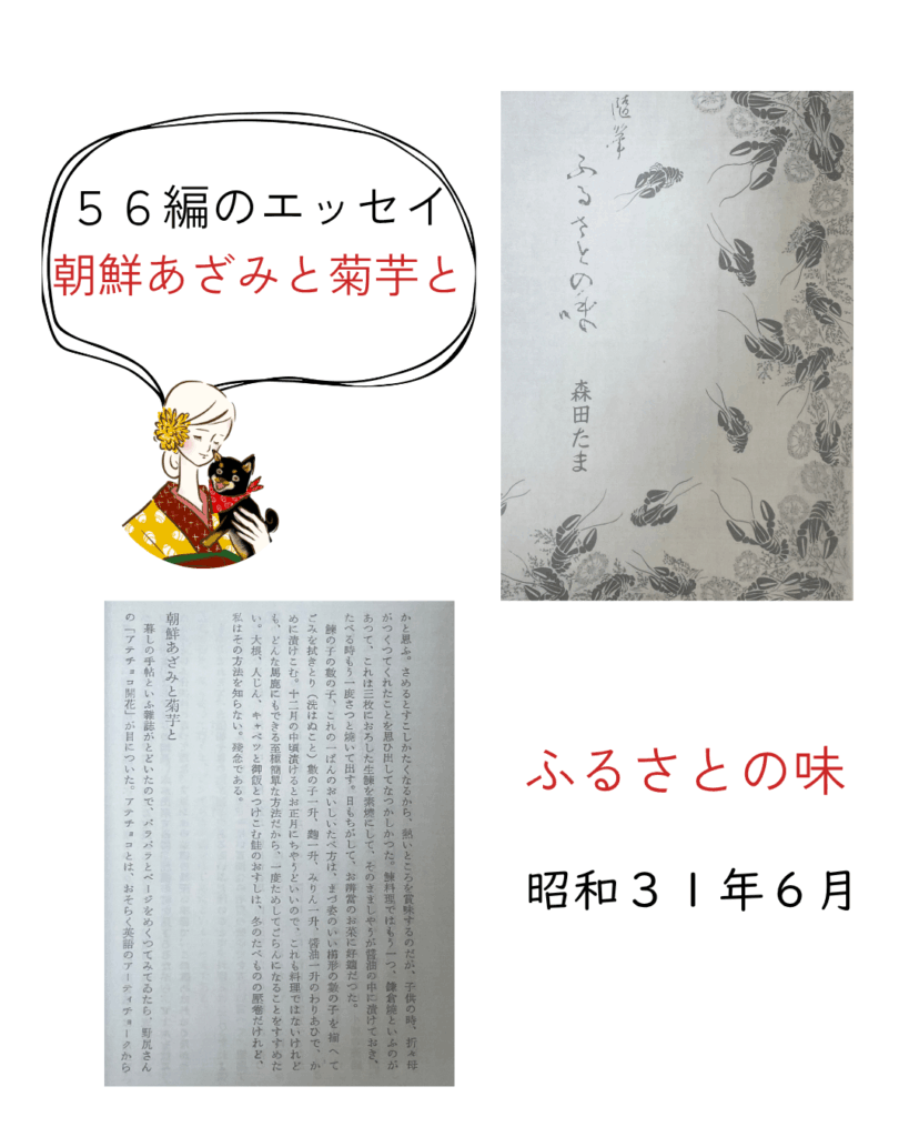 【ふるさとの味】著者:森田 たま発行:昭和31年(1956年)6月25日 食をテーマとした56編ものエッセイが綴られた作品集です📚著者の思い出の料理や食材、故郷の味、四季折々の食卓などが描かれています。その中で菊芋が登場 […]