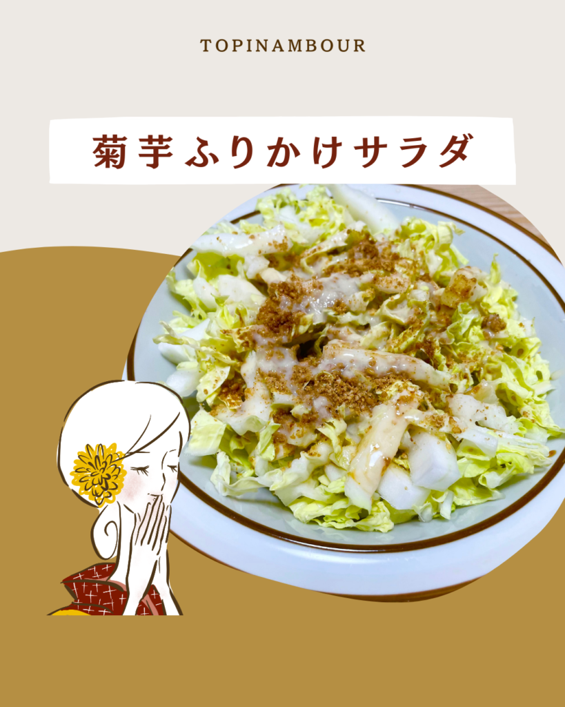 【菊芋ふりかけサラダ】 焙煎された菊芋粉末タイプとすりごまは相性がよく、簡単にふりかけができます😋こちらは白菜のシンプルなサラダ🥗 材料(2人分)白菜…4枚菊芋粉末(焙煎タイプ)…大さじ1杯半焙煎すりごま…50g塩…お好 […]
