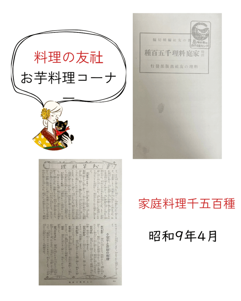【家庭料理千五百種】料理の友社出版部發行編者:料理の友社編輯局發行者:倉林 恒助発行:昭和9年(1934年)4月20日 家庭料理に特化したレシピが満載!お芋料理コーナーのページには「菊芋と慈姑(くわい)の料理」の中に菊芋 […]
